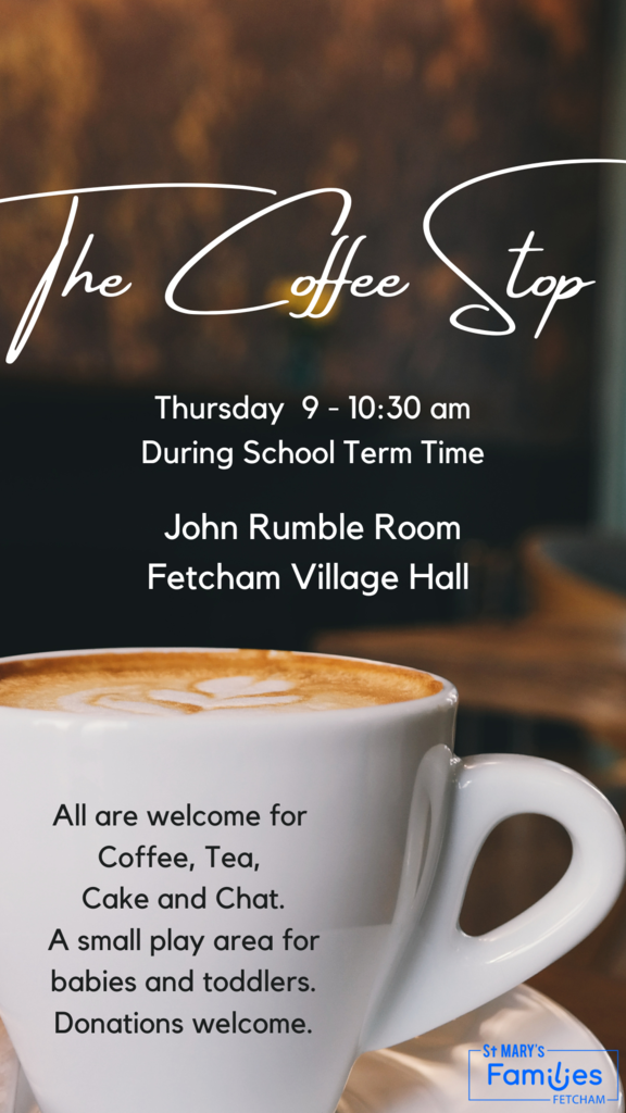 Coffee Stop – Thursdays, 9 – 10:30am: Looking for somewhere to go on Thursday mornings? Pop along to the Rumble Room at the Village Hall during school term time for a hot drink, something sweet and to have a chat. There’s a small play area for babies and toddlers. All are welcome!