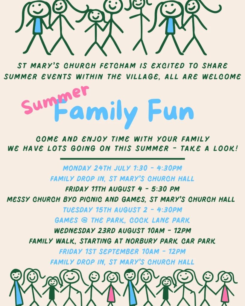Last Chance to book on the St Mary’s Golf Day at The Drift in East Horsley – Thurs 6 July, tee from 1pm: Please let Brian know via office@stmarysfetcham.org.uk if you are attending this social day by Thurs 22 June as he will need to confirm numbers. The cost of £42 includes 1 course meal after the round (normally a BBQ). You can also join just for dinner if you don’t fancy the golf, price £20.